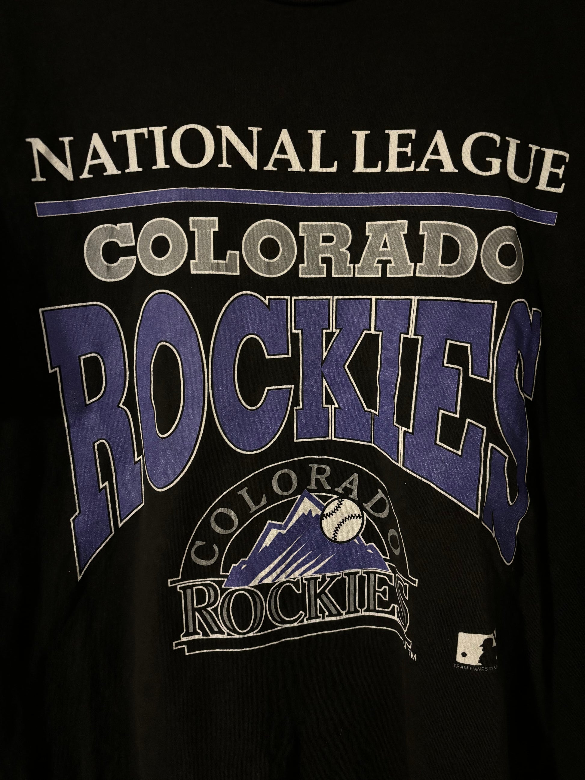 Size XL Purple Metallic 1992 Colorado Rockies Tee. Insane front graphic from 1992 with the OG Rockies logo. No graphic on the back of the tee. Tag is XL but fits closer to a big Large.