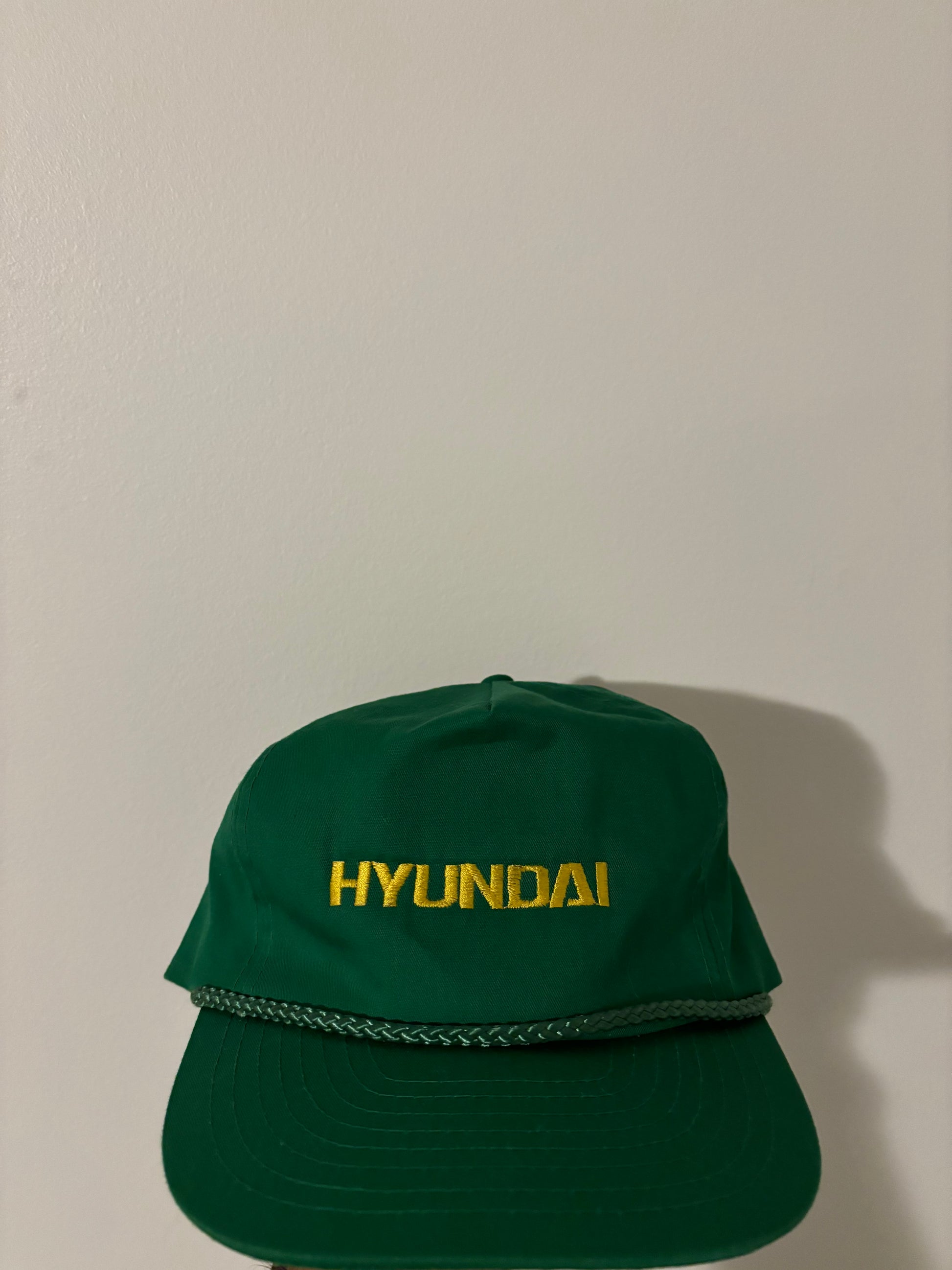 Vintage Hyundai Rope Hat with an adjustable one-size-fits-all all back. Unique zipper adjuster.