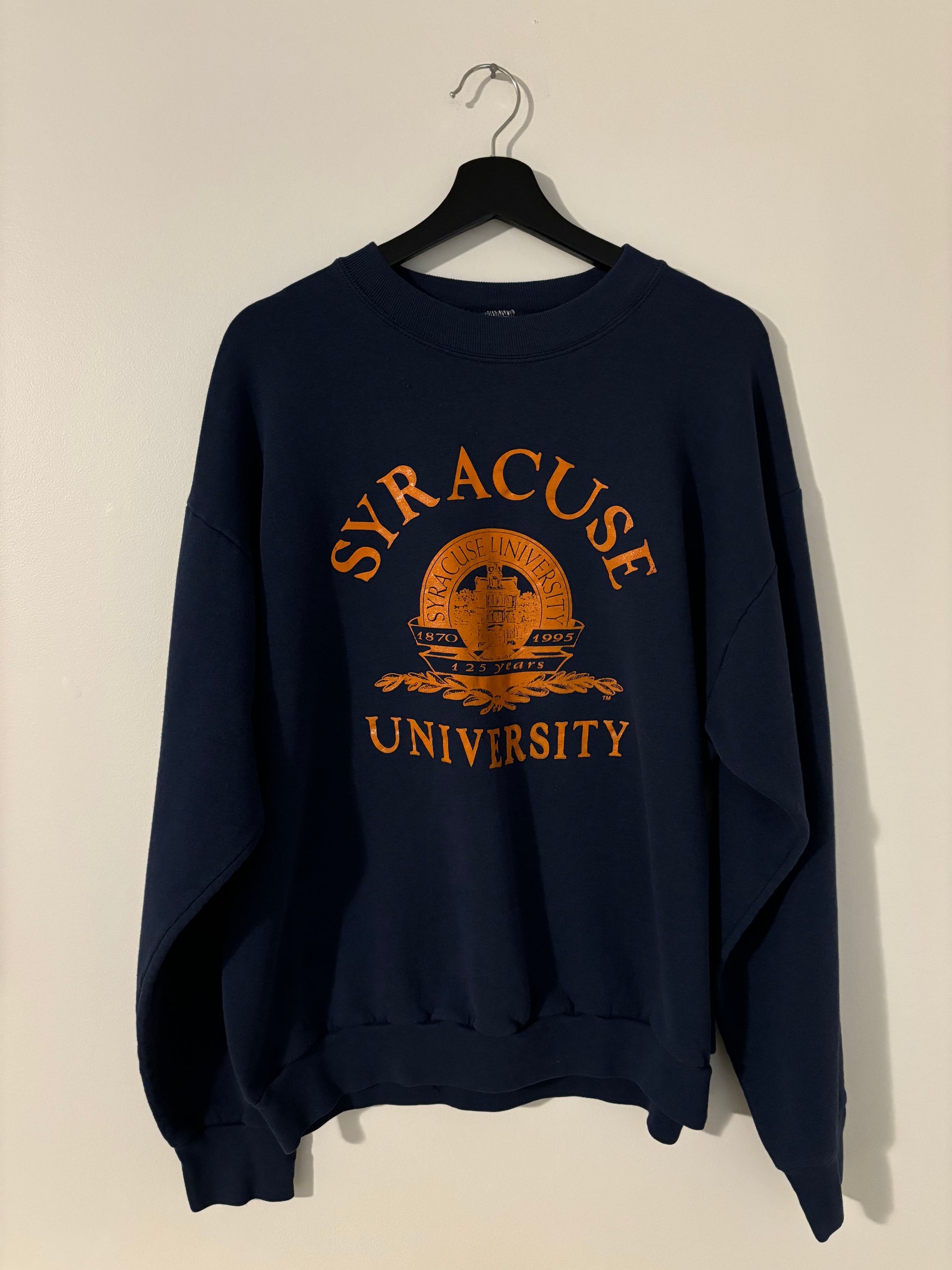 Size XXL (Medium/Large Fitting) Vintage Syracuse University Crewneck. Super soft and light Syracuse hoodie in navy with the school's classic orange in a script logo.